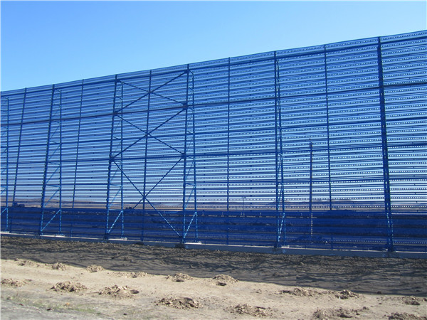 原理:利用空氣動(dòng)力學(xué)原理,按照實(shí)施現(xiàn)場(chǎng)環(huán)境風(fēng)洞實(shí)驗(yàn)結(jié)果加工成一定幾何形狀的擋風(fēng)板,并根據(jù)現(xiàn)場(chǎng)條件將擋風(fēng)板組合成擋風(fēng)抑塵墻,使流通的空氣(強(qiáng)風(fēng))從外通過(guò)墻體時(shí),在墻體內(nèi)側(cè)形成上、下干擾的氣流,以達(dá)到外側(cè)強(qiáng)風(fēng),風(fēng)側(cè)弱風(fēng);外側(cè)小風(fēng),內(nèi)側(cè)無(wú)風(fēng)的效果,從而防止粉塵的飛揚(yáng)。該技術(shù)設(shè)計(jì)中對(duì)多種具有不同形狀和開(kāi)孔率的擋風(fēng)抑塵板進(jìn)行風(fēng)洞效果檢測(cè),結(jié)果表明蝶形擋風(fēng)板在一定的開(kāi)孔率下,其具有明顯降低風(fēng)速和風(fēng)力的作用。擋風(fēng)抑塵墻的設(shè)計(jì)當(dāng)氣流通過(guò)每塊擋風(fēng)抑塵板時(shí),氣流將按擋風(fēng)板的開(kāi)孔通過(guò)。